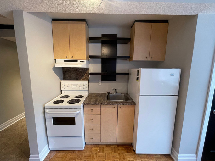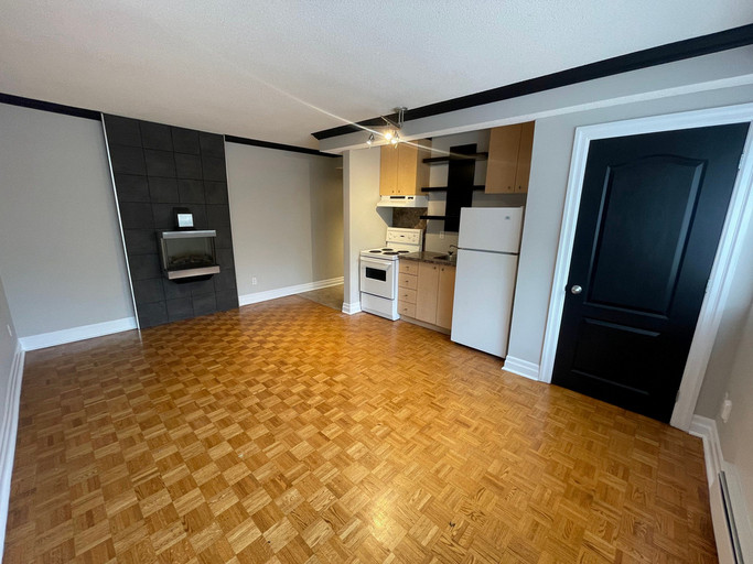 Beautifully renovated, large bachelor apartments. Bright and sunny living areas, renovated kitchens, hardwood floors in main area and ceramic flooring in bathrooms, some with cozy electric fireplaces.